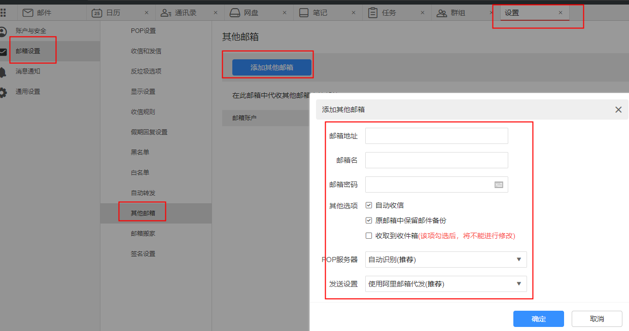 2、对于POP服务器的设置可选择自动识别,无法自动识别的服务商请您手工配置。发送设置可选择云邮箱代发,也可将代收邮箱的SMTP服务器设置为发信服务器。