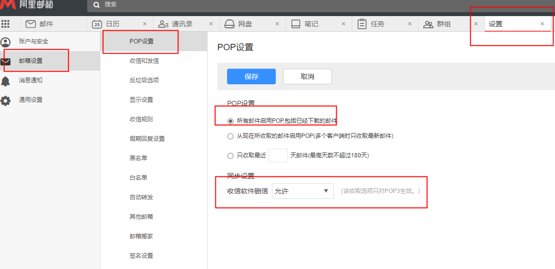 【苏州阿里邮箱】如何设置POP仅收取近期邮件及防止客户端删信?