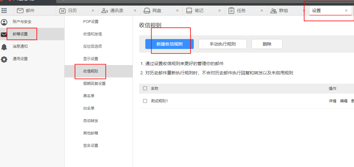 4、最后勾选“创建成功后对历史邮件执行规则”,保存即可。