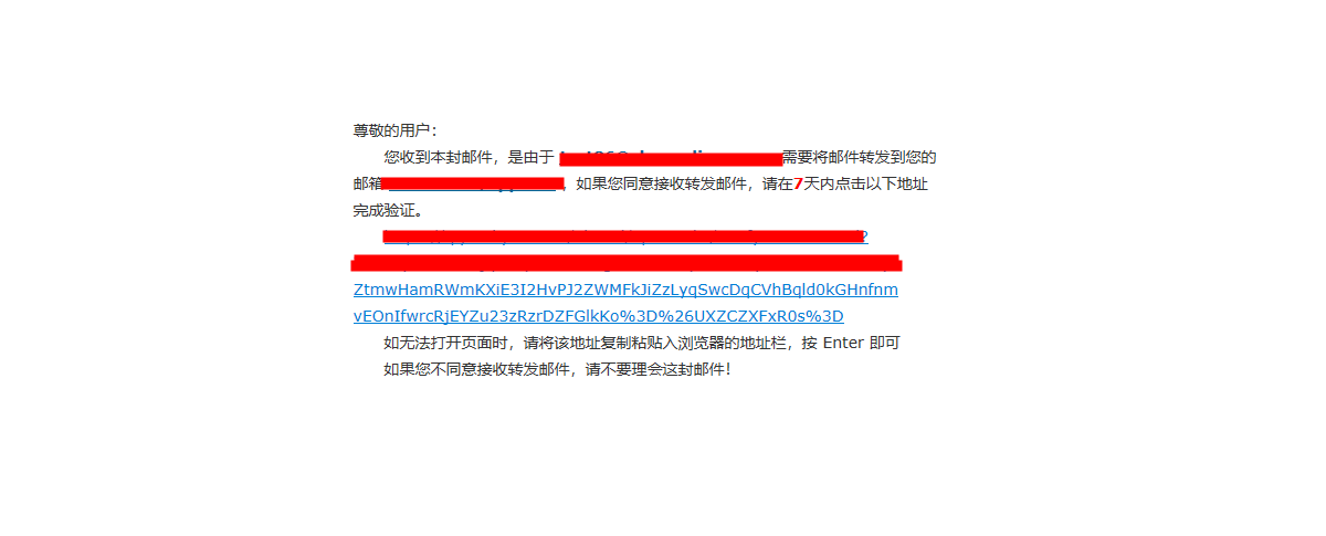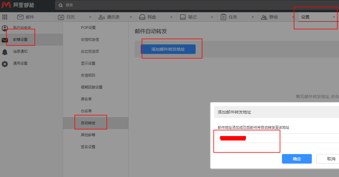 2、添加后会在转发邮箱收到一封确认邮件,转发邮箱地址显示“待验证”状态,点击确认邮件中的链接进行验证后,回到自动转发设置页面保存修改,自动转发设置成功。