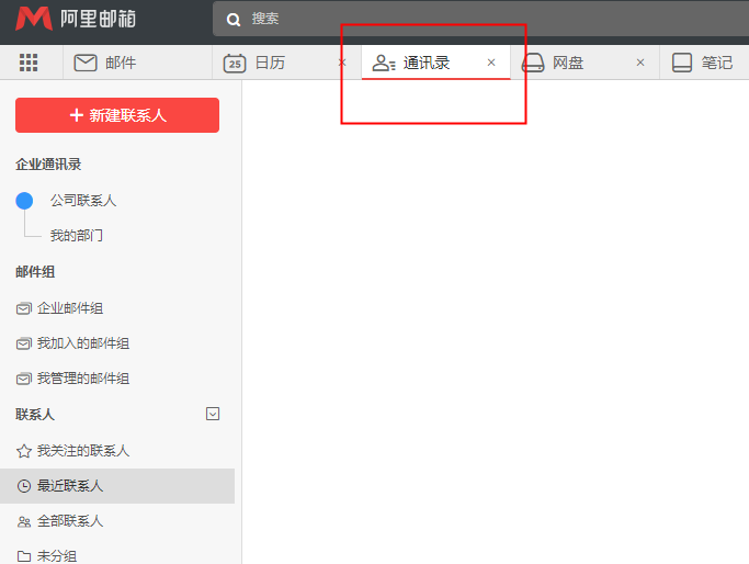 1)点击邮箱右侧下方“通讯录”按钮,进入通讯录页面;