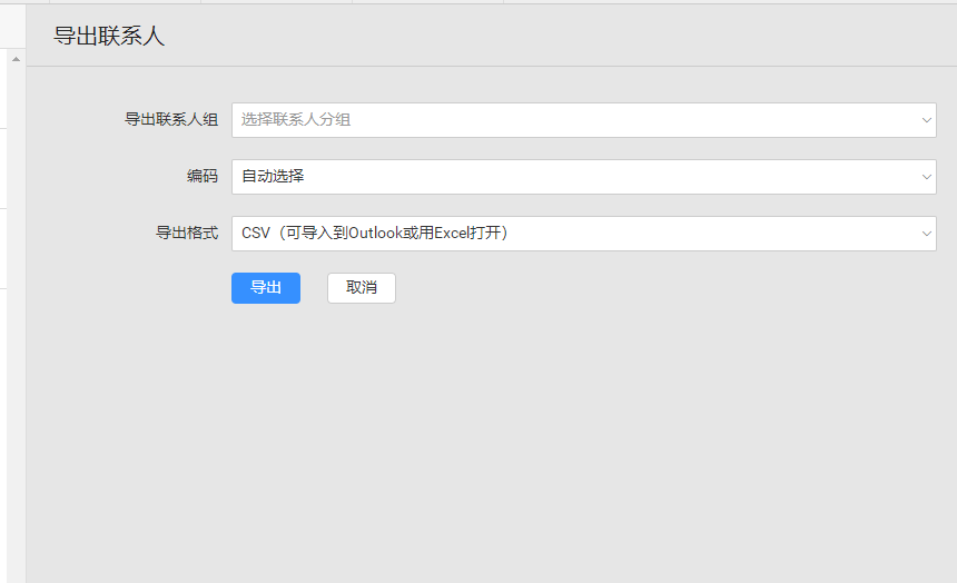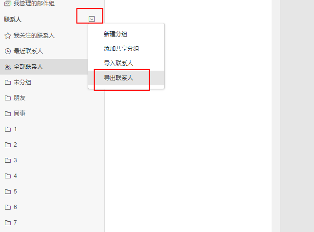 1)导出分组:选择您要导出的联系人分组,也可以全部导出。